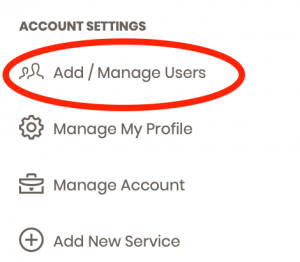 Along the left navigation column, choose the Add / Manage Users option from the Account Settings section.