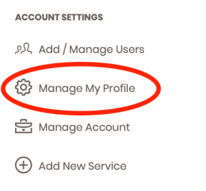 Along the left navigation column, choose the Manage My Profile link under the Account Settings section.